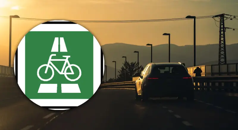 В Германии автомагистрали обозначены знаком 350.1, который изображает белый велосипед и две белые полосы на зеленом фоне.