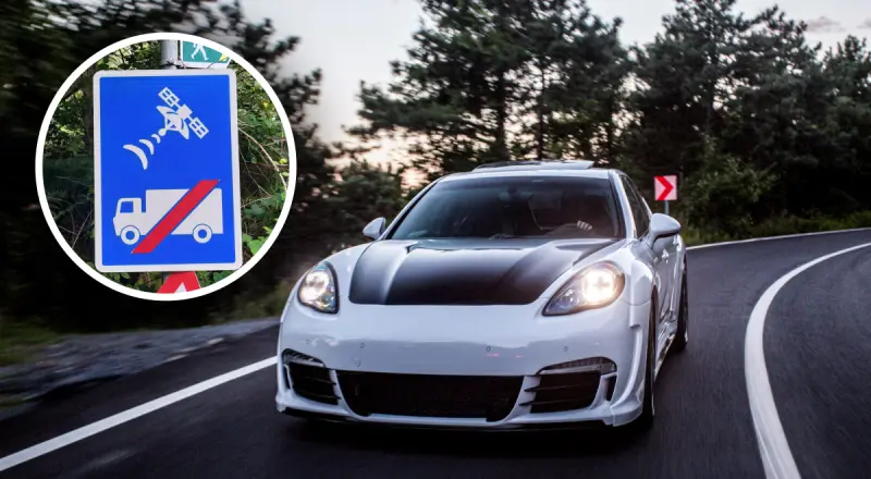 Согласно комментариям, знак предупреждает водителей грузовиков не пользоваться своими GPS-навигаторами и не ехать по узким сельским дорогам. Это особенно важно для грузовых автомобилей из-за ограничений по высоте и ширине мостов и преград, часто встречающихся на таких маршрутах.