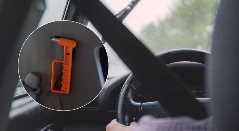Разбиватель автомобильного стекла. Этот инструмент может помочь, если, в худшем случае, вы оказались в ловушке в своем автомобиле. Прикрепите этот инструмент в пределах досягаемости водительского сиденья с помощью липучки или скотча для быстрого и легкого доступа.