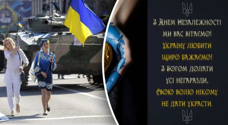 По случаю Дня Независимости нашего государства желаем вам крепкого здоровья, большого семейного счастья, мира, взаимопонимания, согласия и благополучия. Пусть каждый день вашей жизни будет наполнен радостью, теплом и новыми достижениями, а ваши добрые дела приумножат славу родной Украины.
