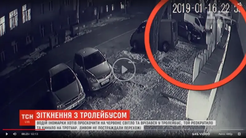 Легковушка врезалась в троллейбус. 17-тонный общественный транспорт ударом откинуло на тротуар в сторону кафе.