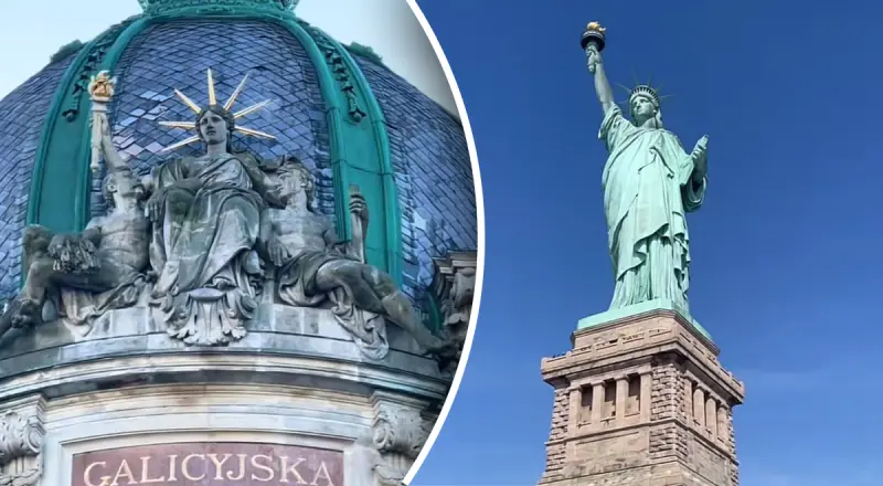 Большинство людей ассоциирует Статую Свободы с Нью-Йорком и Соединенными Штатами, однако подобный символ можно найти и в Украине. И он расположен в самом сердце Львова - над фасадом одного из самых известных исторических зданий города.
