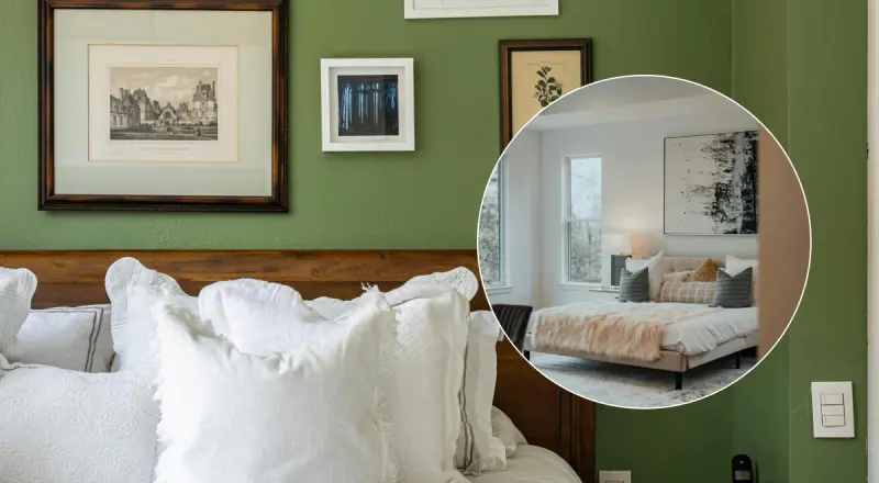 Акцентные стены стали популярным приемом в дизайне спальни, но они часто нарушают целостность пространства, делая его более маленьким и сегментированным.