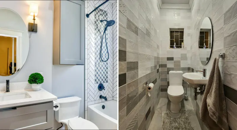 Для маленьких ванных комнат используйте плитку большего размера или вытянутые формы, чтобы визуально расширить пространство.