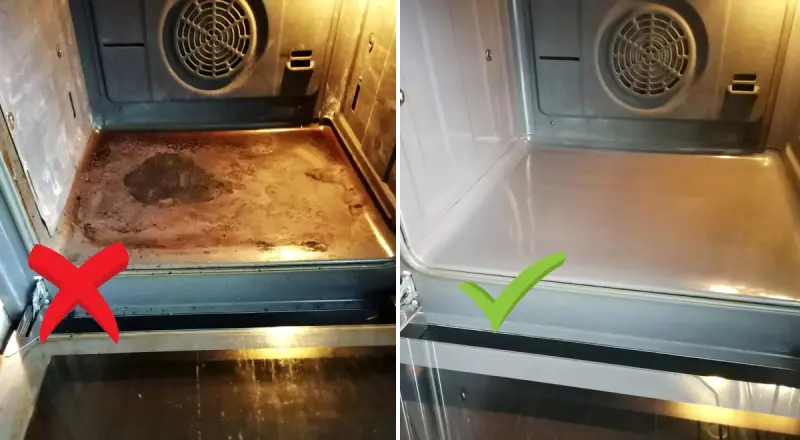 Перед началом убедитесь, что духовка полностью остыла. Пользовательница сети Net Mums по имени Джо поделилась проверенным алгоритмом, который позволяет очистить даже самые грязные дверцы и дно прибора.