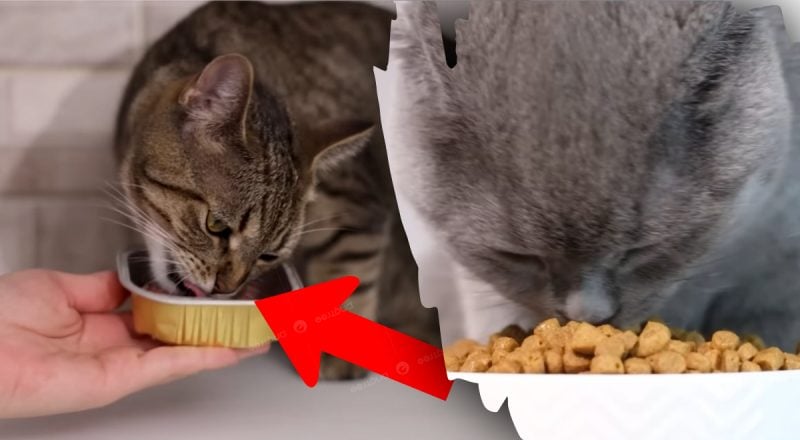 Если же кот постоянно просит есть, можно часть суточной нормы заменить влажным кормом, а сухой оставить в качестве перекуса — но только в пределах рассчитанных калорий.