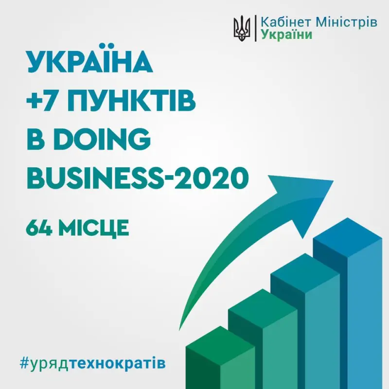 Как сообщил премьер-министр Алексей Гончарук, в рейтинге Doing Business-2020 Украина поднялась сразу на семь пунктов и заняла 64 место среди 190 стран. Глава Кабмина уверен, что это позитивный сигнал для украинских предпринимателей и "зеленый свет" для иностранных инвесторов.