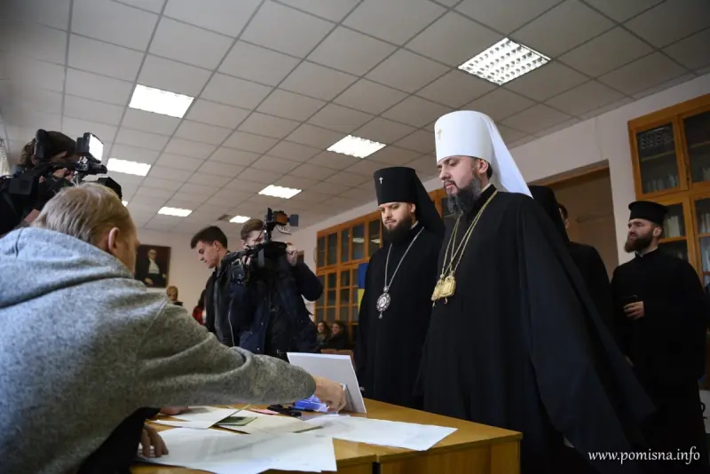 Отдал свой голос на выборах президента Украины митрополит Киевский и всея Украины Епифаний.