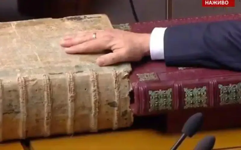 Глава КС пригласила на трибуну новоизбранного президента, вручила ему текст присяги украинскому народу, определенный Конституцией Украины.
