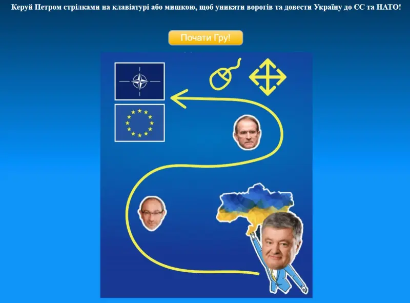 Партия Петра Порошенко Европейская солидарность перед парламентскими выборами запустила браузерную игру с названием "Помоги Украине вступить в НАТО и ЕС".
