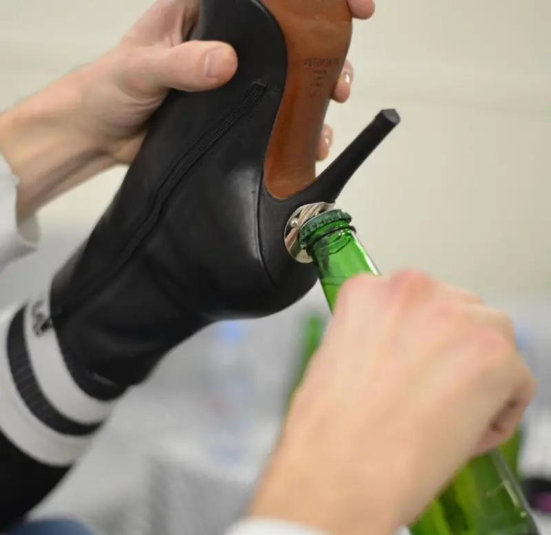 В сети с юмором отнеслись к такому необычному аксессуару в обуви, мужчины требовали сделать такую же обувь с открывашкой, но на низком каблуке.