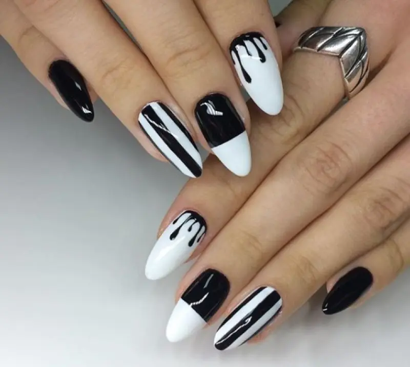 Черно-белый маникюр практически никогда не выходит из моды. Он как сама жизнь – то черная полоса, то белая.