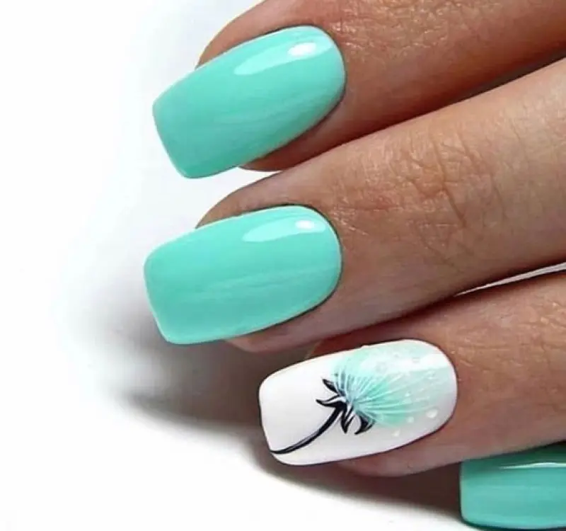 В нейл-дизайне бирюзовый цвет чувствует себя сродни короля, ведь сложно найти цвет, с которым он плохо сочетается. Классический маникюр бирюзовый с белым – настоящий шедевр. Именно поэтому идеи дизайна бирюзового маникюра множатся со скоростью ветра, ибо любой вариант – удачный. При этом длина ногтей, их форма только выигрывают от бирюзового цвета – он подчёркивает красоту ноготков и добавляет рукам нежности.