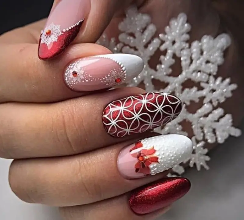 Отметим, что синий и красный – самые простые, но гарантированно удачные варианты новогоднего френча.