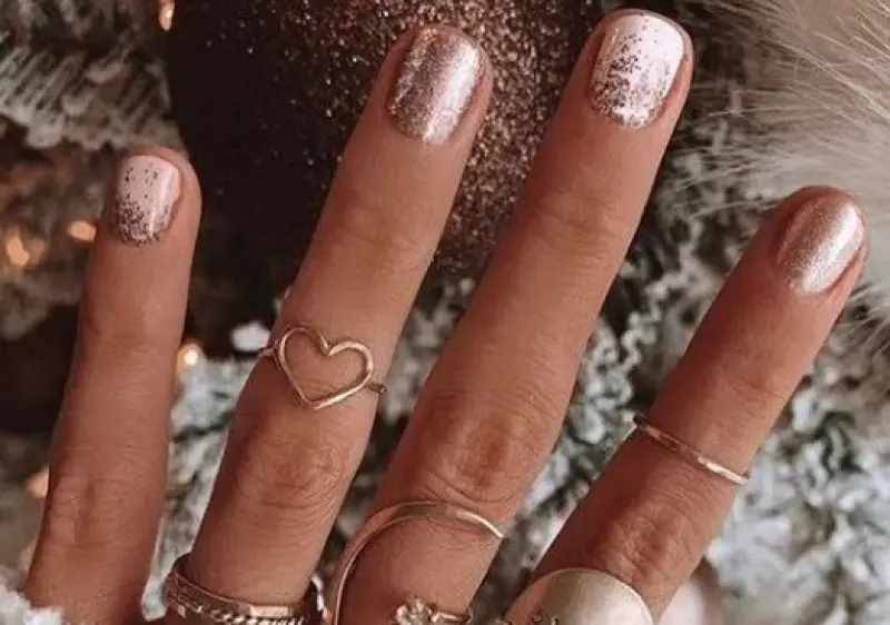 Модный маникюр на зиму 2020 на короткие ногти – это обязательное наличие золотистых или сребристых ноготков, при этом остальные ногти покрываете тем лаком, который будет наиболее гармоничен к вашему гардеробу.