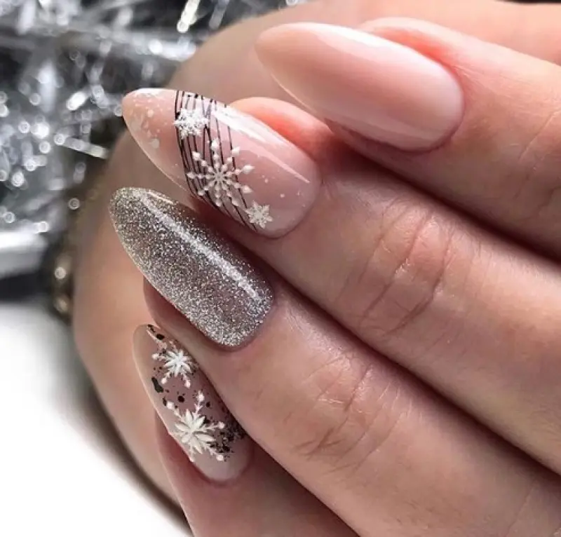 Нежный новогодний маникюр с серебром – это маленькая сказка на ногтях, которая добавит образу загадочности, и призвана заставить вас поверить в свою заветную мечту и чудо.