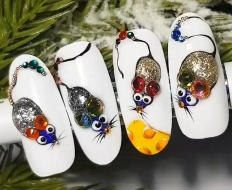 Праздничный маникюр мышка - стильный маникюр на Новый год 2020 год Крысы фото
