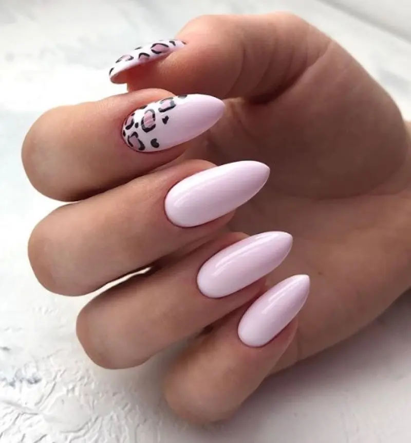 В 2020 году в моде яркий хищный принт. Сделайте нежную розовую базу, и на некоторых ноготках разместите леопардовый принт в темно-розовых тонах – получится очень эффектный и креативный маникюр.