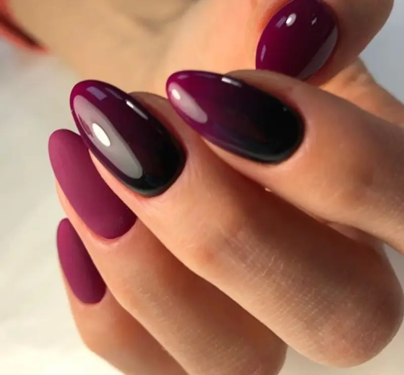 Якщо вам подобаються і матові нігті марсала, і глянцеві, то чому б не зробити половину нігтів матовими, а половину глянцевими? Вийде дуже гарний манікюр марсала 2020. Спробуйте - ви точно не програєте!