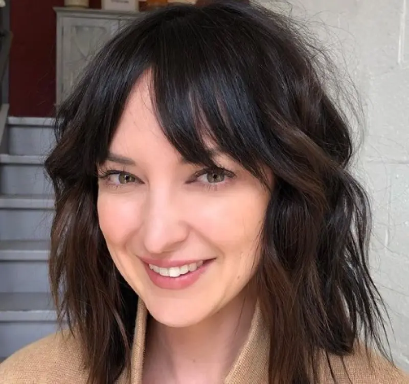 Суть цього знаменитого чубчика в тому, що по центру волосся коротше – на рівні ширини між очима, і поступово він розширюється і подовжується. Саме тому його ще називають чубчик-шторка. До речі, цей чубчик робить обличчя візуально стрункішим.