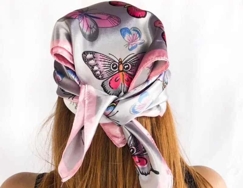 Это очень крутой шелковый или хлопчатобумажный шарф или платок с красочным и эффектным принтом. Главное, подобрать бандану удачного оттенка, который красиво подчеркнет глаза или волосы.