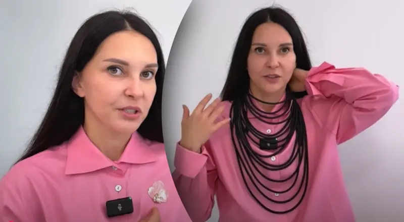 Она показывает, как комбинировать различные аксессуары, например сочетать многослойные ожерелья, которые создают динамичный и современный вид. Кроме того, она демонстрирует несколько готовых образов: