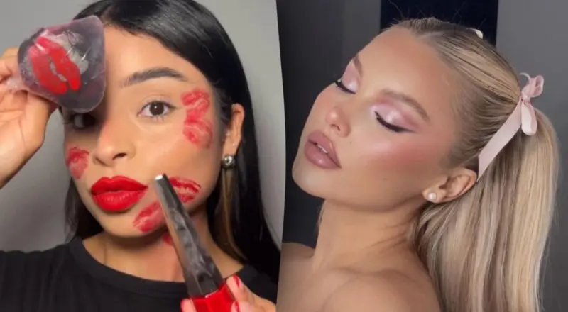 Еще один эффектный вариант макияжа на 14 февраля — отпечатки губ. Такой прием выглядит как настоящий арт-объект и сразу создает праздничное настроение.