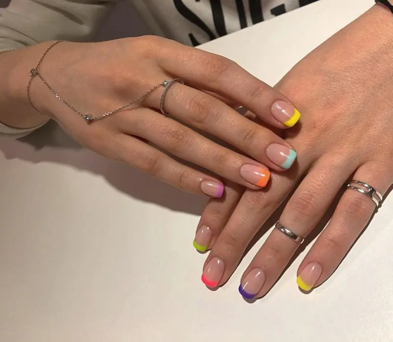 Все мы знаем оригинальный французский маникюр. Нежно-розовый ноготь с идеальным, тонким белым краем. В сезоне весна 2021 мы будем использовать ту же технику, но край станет более необычным и немного безумным. Весенний маникюр френч – это «улыбки», нарисованные яркими сочными лаками.