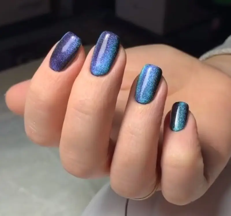Якщо хочете найзагадковіший манікюр, який нагадає про ті щасливі дні, коли ви неквапливо гуляли ввечері і дивилися на нічне небо, то зробіть дизайн нігтів котяче око в синьому кольорі. Крім того, такий же ефект нічного неба створить фіолетовий лак, а також чорний. У будь-якому разі ви отримаєте "зірки" на нігтях, і в ті моменти, коли вам буде сумно, можете подивитися на "небосхил" – ви відразу посміхнетеся, і життя налагодиться!