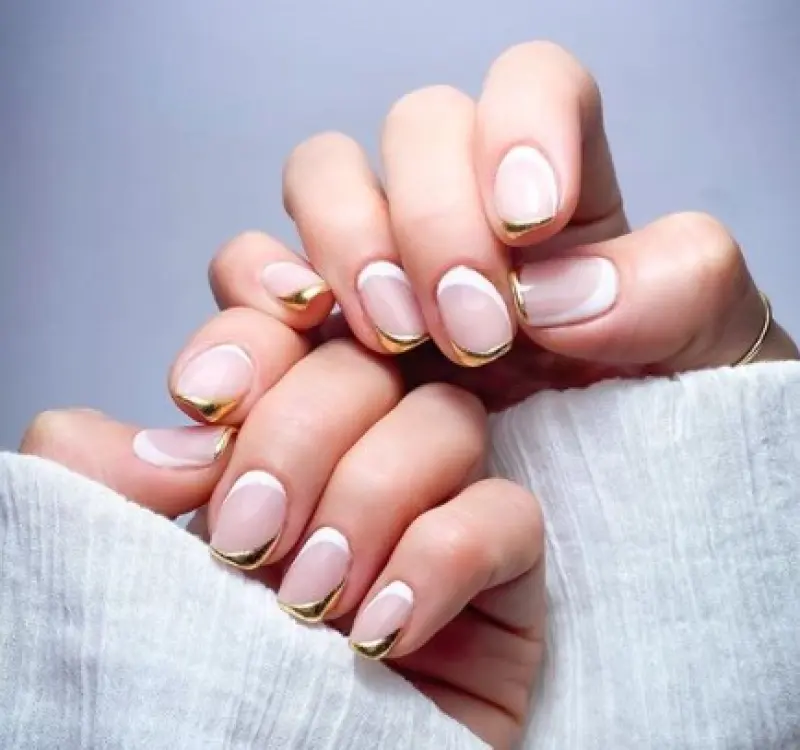 Один з варіантів популярного французького манікюру виглядає так: нігті середньої довжини, покриті нюдовим, бежевим чи коричневим лаком, а з двох боків тоненькі білі «посмішки». Важливий акцент - "посмішки" розміщені трохи асиметрично.