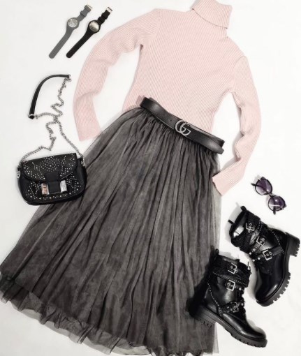 Это самая популярная комбинация в сезоне зима 2021, так как боевые сапоги и ботинки на грубой подошве в тренде. Но это еще и один из самых удачных дуэтов в одежде.