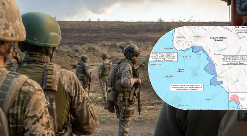 20 марта в Институте изучения войны заявили, что украинские войска недавно продвинулись в Белгородскую область РФ, но пока не понятно, удерживают ли они эти позиции.