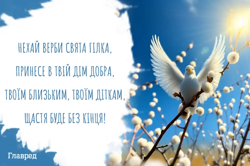 В этот особенный день желаю вам благодати и уюта. Пусть вербовые ветви, освящённые в храме, станут символом защиты и духовной силы. Пусть они принесут в ваш дом мир, здоровье, достаток и тишину в душе. С Вербным воскресеньем — пусть сердце ваше будет наполнено светом и благодарностью.