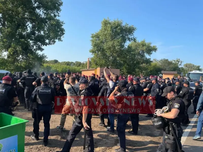 Как сообщает Telegram-канал PavlovskyNEWS, возле места открытия арт-объекта, которое посетил Зеленский, произошло массовое столкновение ветеранов АТО с полицией.