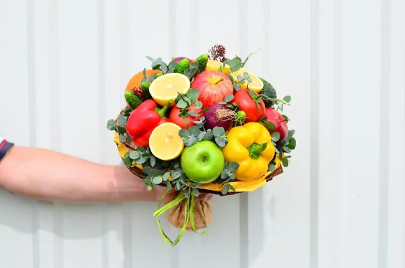 Делают букеты из различных фруктов: яблок, клубники, груш, винограда, гранатов, лимонов и т.д.