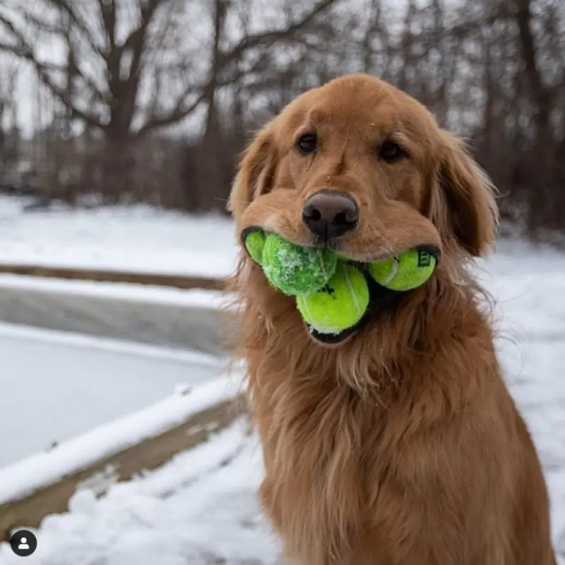 Золотистый ретривер Финли, что живет в США, идет на мировой рекорд: он может в пасти протащить одним махом сразу 6 теннисных мячиков.