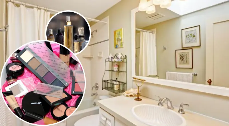 Ванная комната не подходит для хранения косметических средств, особенно пудровых продуктов, таких как тени для век или тональный крем. Влага способствует развитию бактерий в косметике, что может вызвать раздражение кожи. Косметику лучше держать в спальне в комоде или на туалетном столике.
