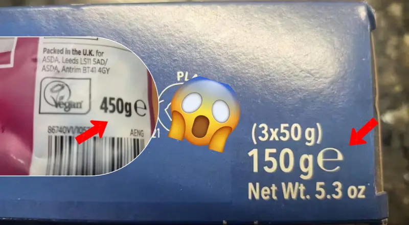 Оценка - это вес внутри продукта, и это означает, что производители не взвешивают каждую пачку, которую они продают, отдельно, а просто настраивают свои производственные линии таким образом, чтобы подавляющее большинство продаваемых товаров в среднем соответствовали критериям веса, указанным на пачке.