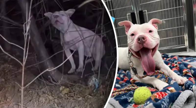 Собаку Элфи сотрудники приюта для животных в округе Монтгомери нашли прикованной цепью к дереву во время сильного мороза. Они не смогли пройти мимо четвероногого, поэтому он оказался в приюте.