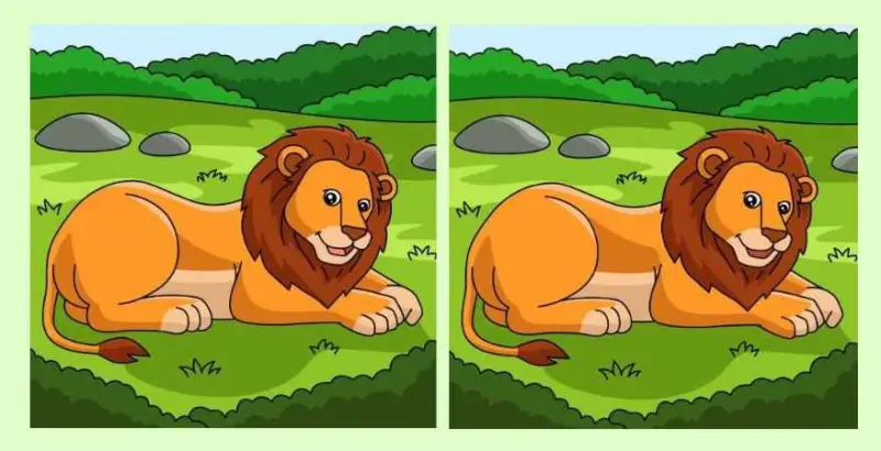 На картинках мы видим двух львов, которые лежат на траве. Сперва у вас может возникнуть мысль, что львы на самом деле одинаковые, но мы не советуем верить этому первому впечатлению. Отличия там точно есть, просто они очень хорошо спрятаны, и заметить их смогут только очень наблюдательные люди.
