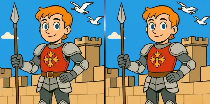На обеих иллюстрациях изображен рыцарь, который стоит с копьем. На первый взгляд кажется, что картинки идентичны, но это лишь обман зрения. На самом деле в них скрыты три мелкие, но заметные отличия, которые вам и нужно будет найти.