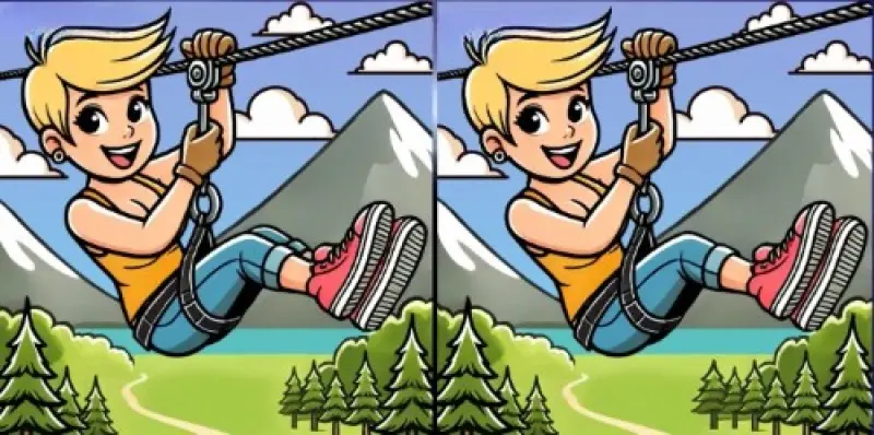 В следующей загадке нужно найти три различия между двумя расположенными рядом картинками, пишет jagranjosh. На рисунках изображена девушка, которая спускается на зиплайне в горах.