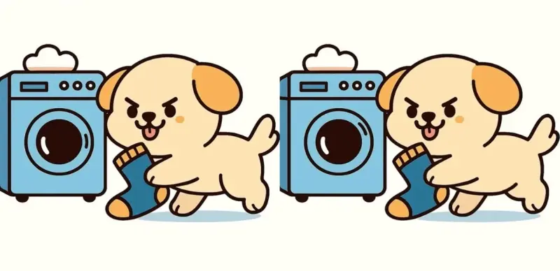 На этот раз вам предлагается попробовать найти три расхождения на паре изображений, где показаны два щенка, которые несут носок в стиральную машину, пишет jagranjosh.