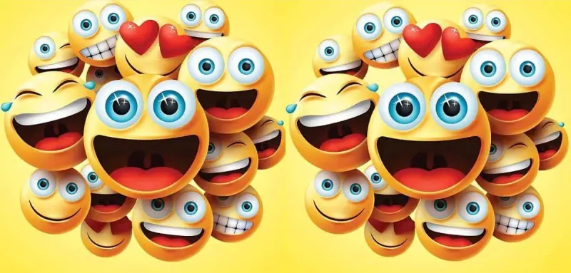 На двух рисунках, которые на первый взгляд будут казаться одинаковыми, мы видим разнообразные веселые смайлики.