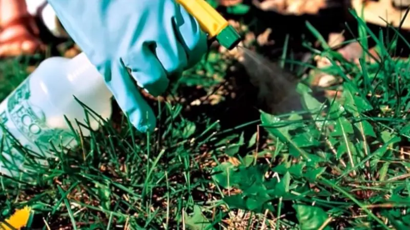 Далее следует распылить ваше средство на сорняки. Нужно делать это на близком от растения расстоянии, чтобы раствор попал на корни сорняков.
