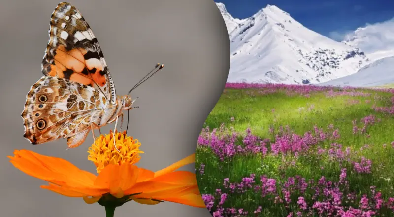 Где-то среди этой красивой природы спряталась бабочка, ставшая практически "невидимой" среди горных вершин. Попробуйте проверить, удастся ли вам ее найти.