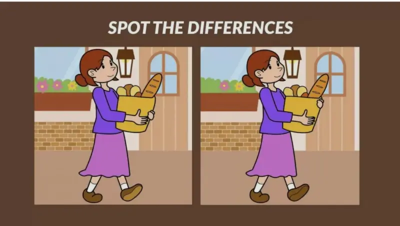 На картинке вы увидите женщину, которая возвращается из продуктового магазина с продуктами. Между двумя картинками есть 3 отличия.