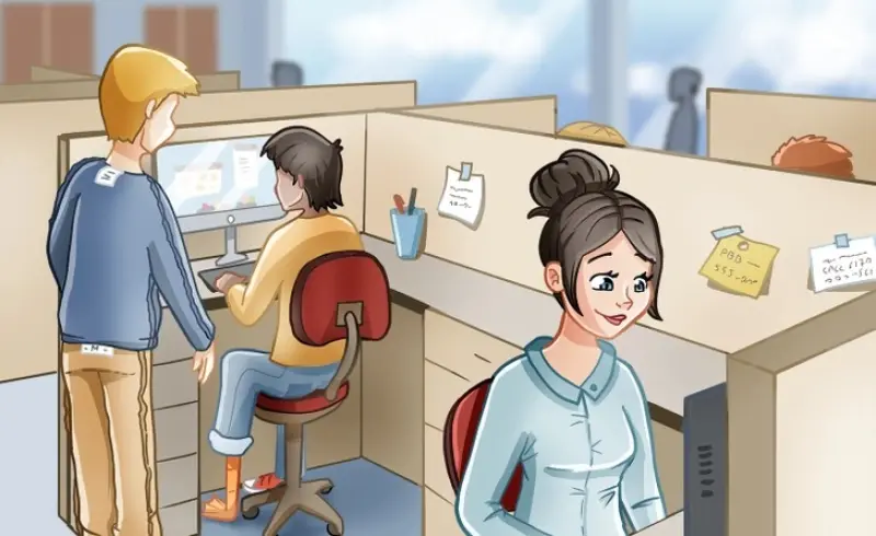 Перед вами задание, в котором нужно найти три ошибки на картинке, пишет jagranjosh. На картинке изображен офис, где работают три человека: девушка, сидящая за компьютером лицом к зрителю, а позади нее - двое мужчин.