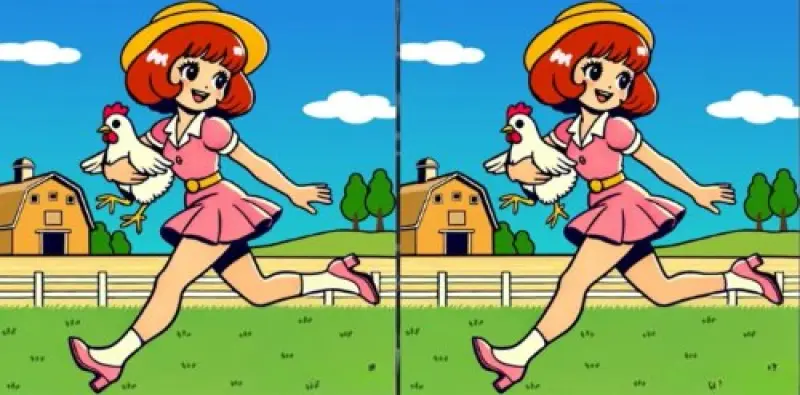 В следующей загадке нужно будет искать три отличные детали между картинками, на которых мы видим девушку, которая бежит, держа на руках курицу, пишет jagranjosh.