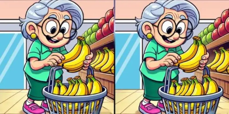В очередной задаче вам нужно будет обнаружить три различия на иллюстрациях, где изображена бабушка, которая выбирает бананы в супермаркете, пишет jagranjosh.